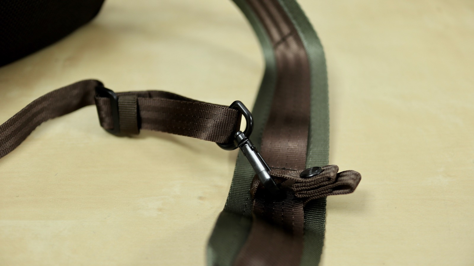 ▼ 一般斜揹的困擾就是在跑步或是騎車的時候會歪掉,所以為了防止這點,他還多了一條固定帶,從另一個角度來固定。
