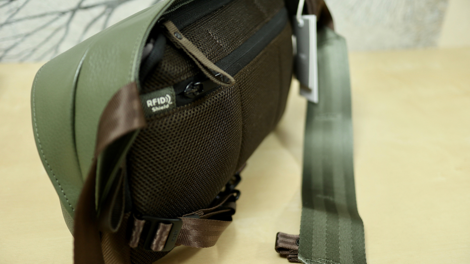 ▼ 介紹完 Tego 系列中最大的防盜後背包,接下來跳到體積最小的防盜單肩迷你包。這也是這系列中,唯一一款有春夏限定色橄欖綠的顏色,其他的都只有出炭黑&岩石灰。