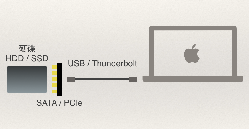 ▼ 因為外接硬碟影響速度的條件大概下圖中有這幾個,就算所有的東西都很高級很快,只要其中一個慢下來就是慢了。