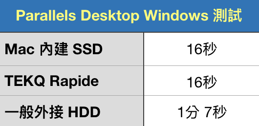▼ 無論把 pvm 檔放在內建 SSD 上跟 Rapide 上都是一樣的開機速度,但放在外接 HHD 上可就等到天花地老,操作都頓頓的了。