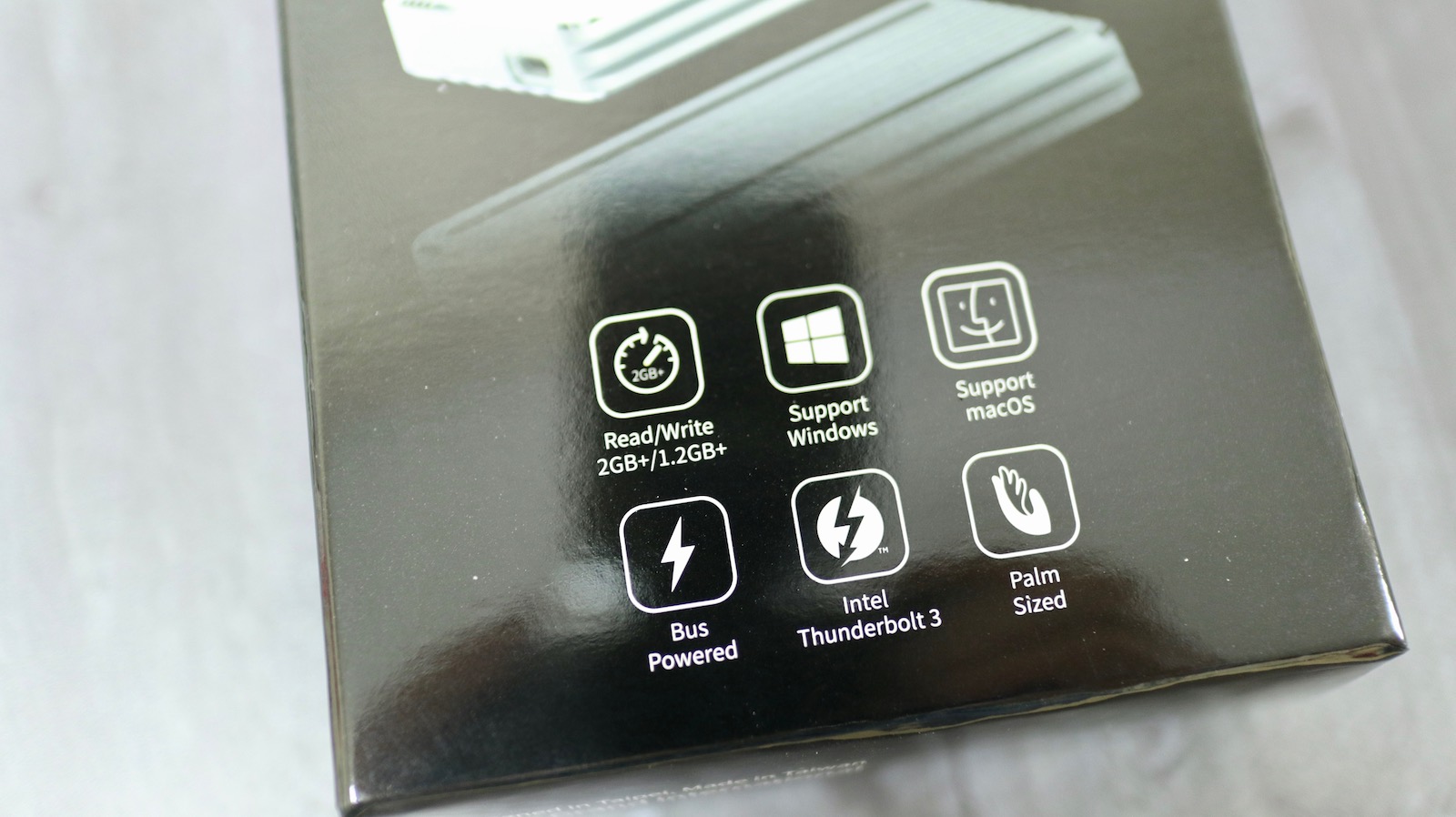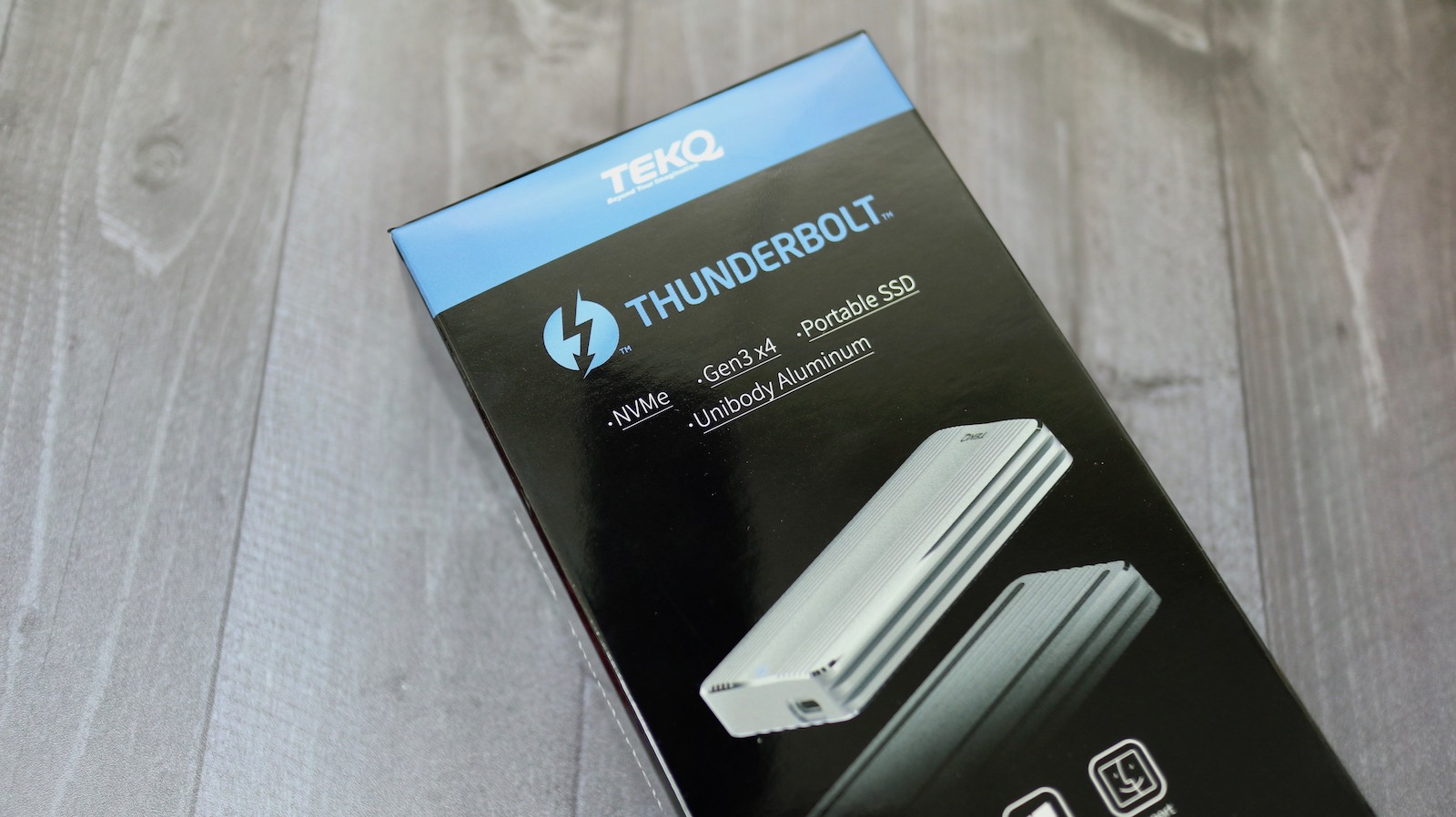 ▼ 包裝外盒採取藍黑配色,雖然沒有特別好看,但這正是 Intel ThunderBolt 的標準配色。重點則是上方的標示 NVMe 與 PCIe Gen3x4。