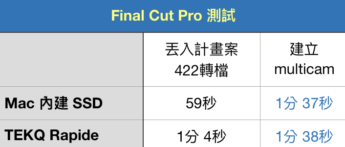▼ 接著我們試試看 Final Cut 的使用上,放在內建 SSD 或是把資料庫放外接,有沒有什麼差別。