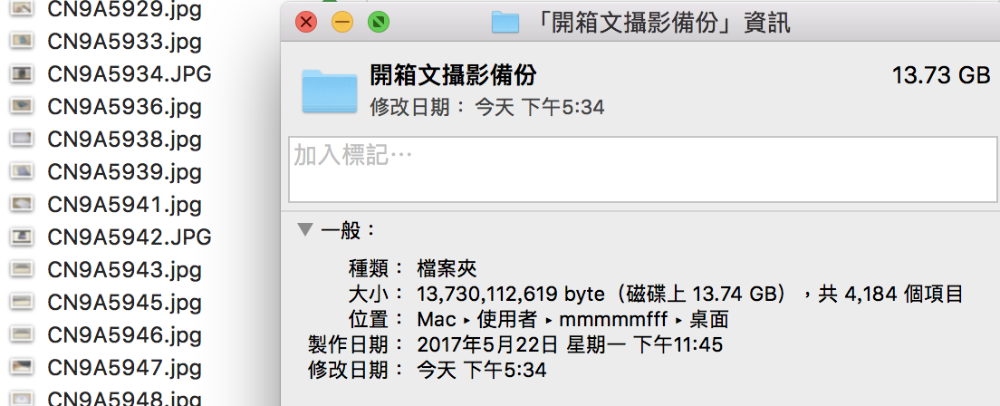 ▼ 當然,測速軟體基本上算是大檔傳輸,實際上我們用小檔案來試試看,我準備了4千多張照片,平均每張約 3 MB,共 13.7G 的檔案。