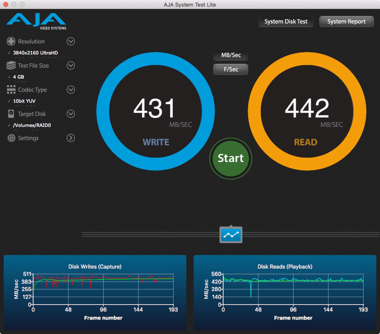 ▼ 我們把兩顆硬碟使用 RAID 0 模式,原本單顆讀寫 210MB/s 左右的硬碟,果然變成 430MB/s 左右的讀寫速度了,令人滿意。