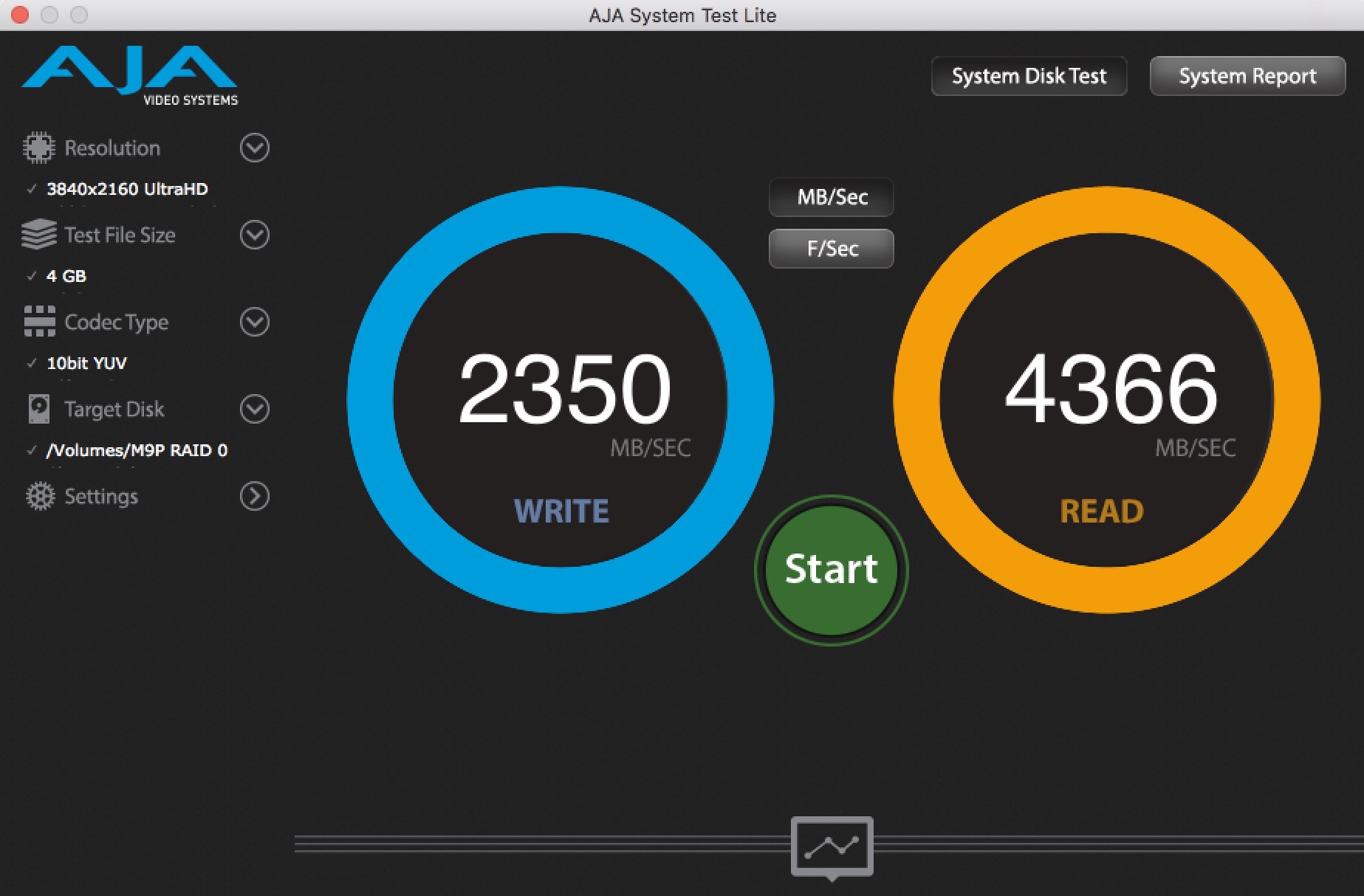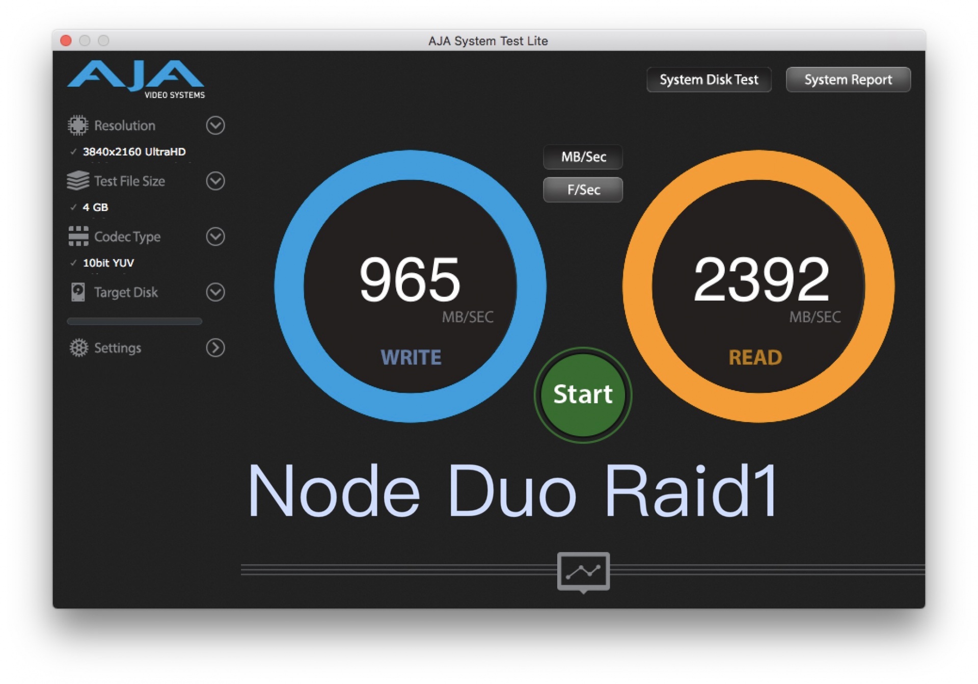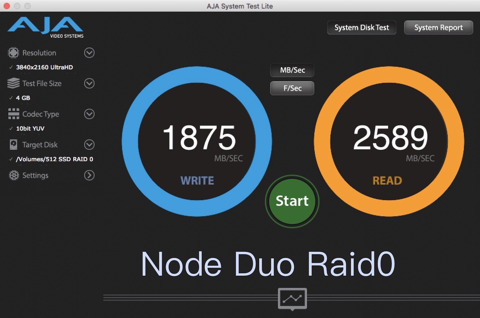 ▼ 但我們還是手賤想試試看更猛的,我們串了兩台 Node 系列,然後都接在 MBP 上,跑軟體 RAID0,得到了這種超級恐怖的突破 4000MB/s 的數字。