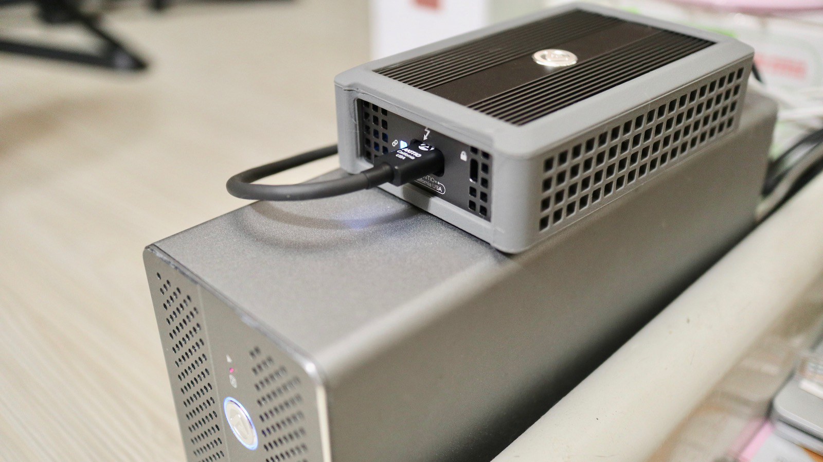 ▼ 就算把它串接在別的 ThunderBolt 3 裝置後面也沒問題,一樣發揮出他的價值。