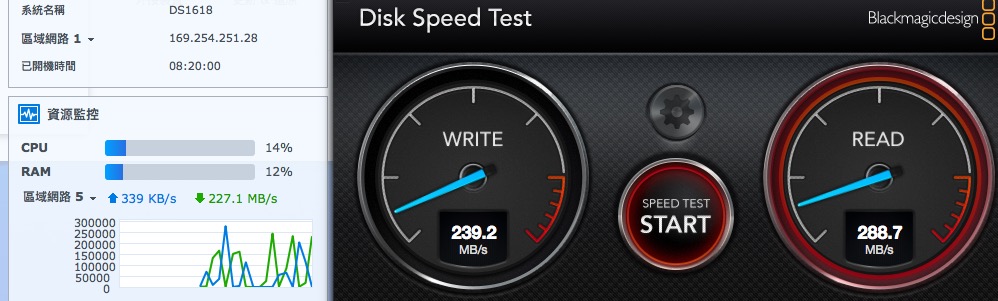 ▼ 就算 NAS 不是 SSD,光是可以跑出原本 3.5 硬碟的全速,就超級爽的了。比起原本的 100MB/s 快了 2~3 倍。
