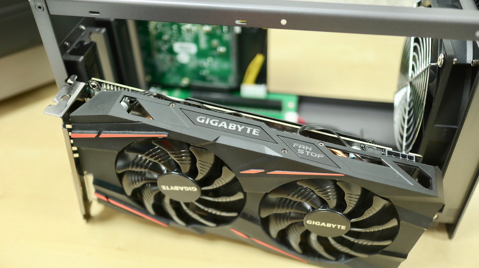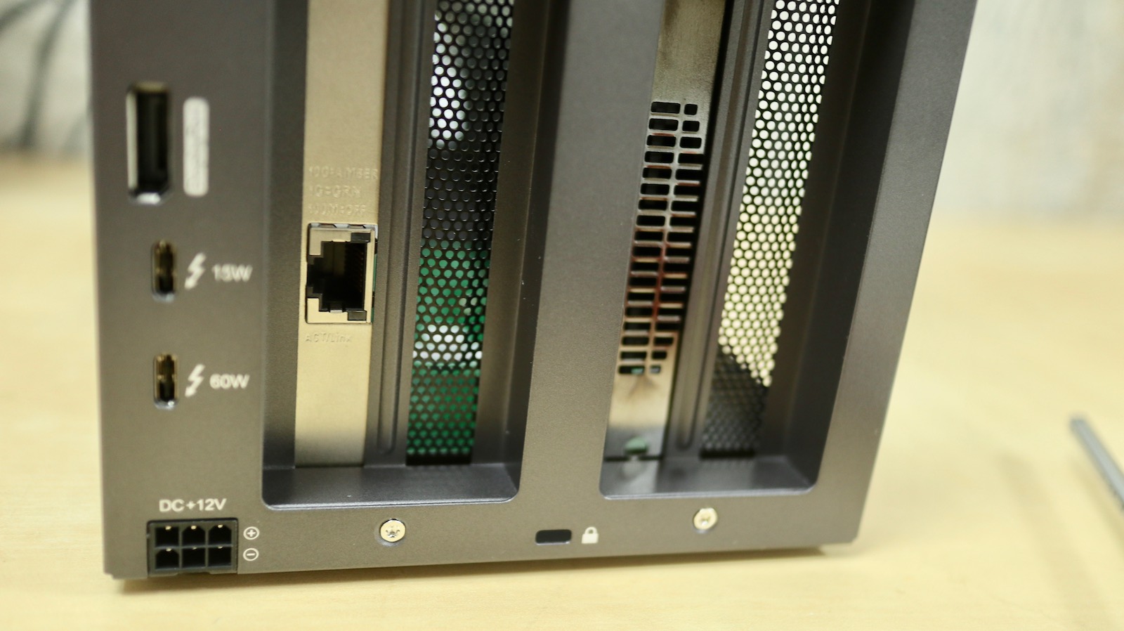 ▼ 我知道一定會有人好奇那顯卡呢?嗯,以晶片來說是可以啦,但因為他只有那 PCIe 槽提供的 25W 電力,要給顯卡的話是不夠需要另外接電,再來是雙風扇的顯卡長度有點太長,只能塞單風扇的短卡,或是把 Node Duo 後面的風扇拆掉才有辦法。所以要接顯卡的話,不如買個 Node 會省事很多。