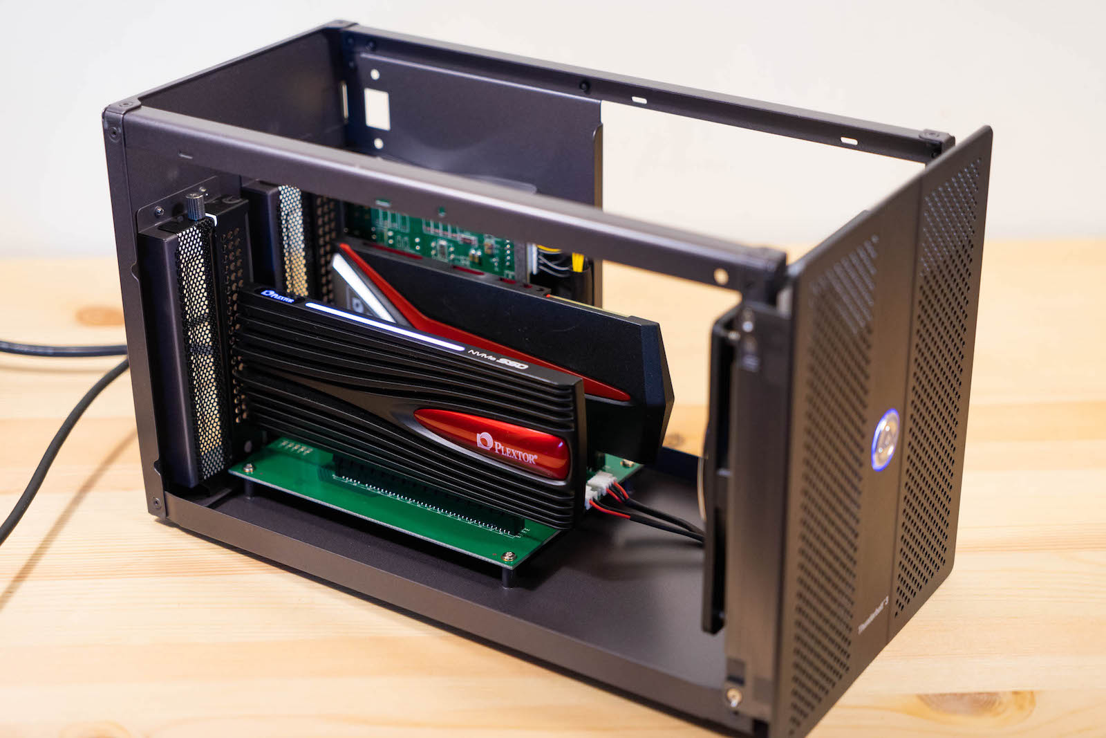 ▼ 其實裡面的用途就是兩個 PCIe 插槽,你要自己各種組合都可以,網卡+SSD,雙SSD 等等,很自由。