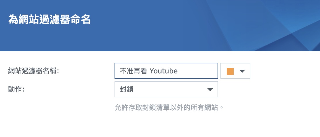 ▼ 除了限制時間,更可以限制上網的黑名單與白名單。比如說我受夠了小朋友整天看 Youtube,就可以把 Youtube 設定為黑名單。