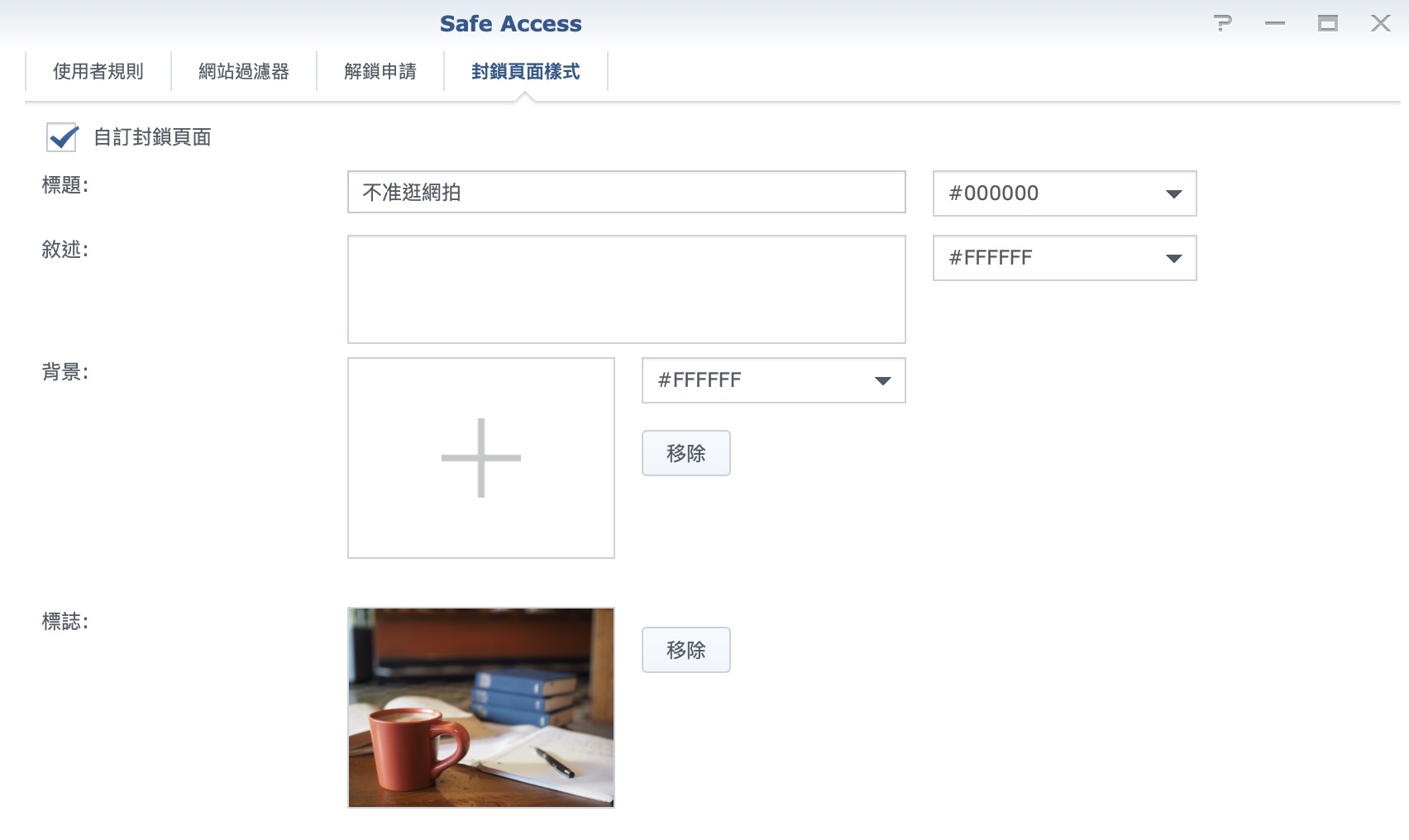 ▼ 此外,也可以設定如果成員上了被封鎖的網站,會看到什麼樣的指示。