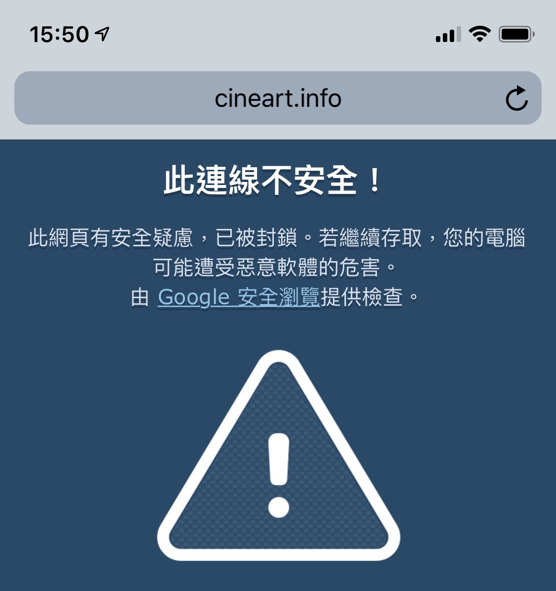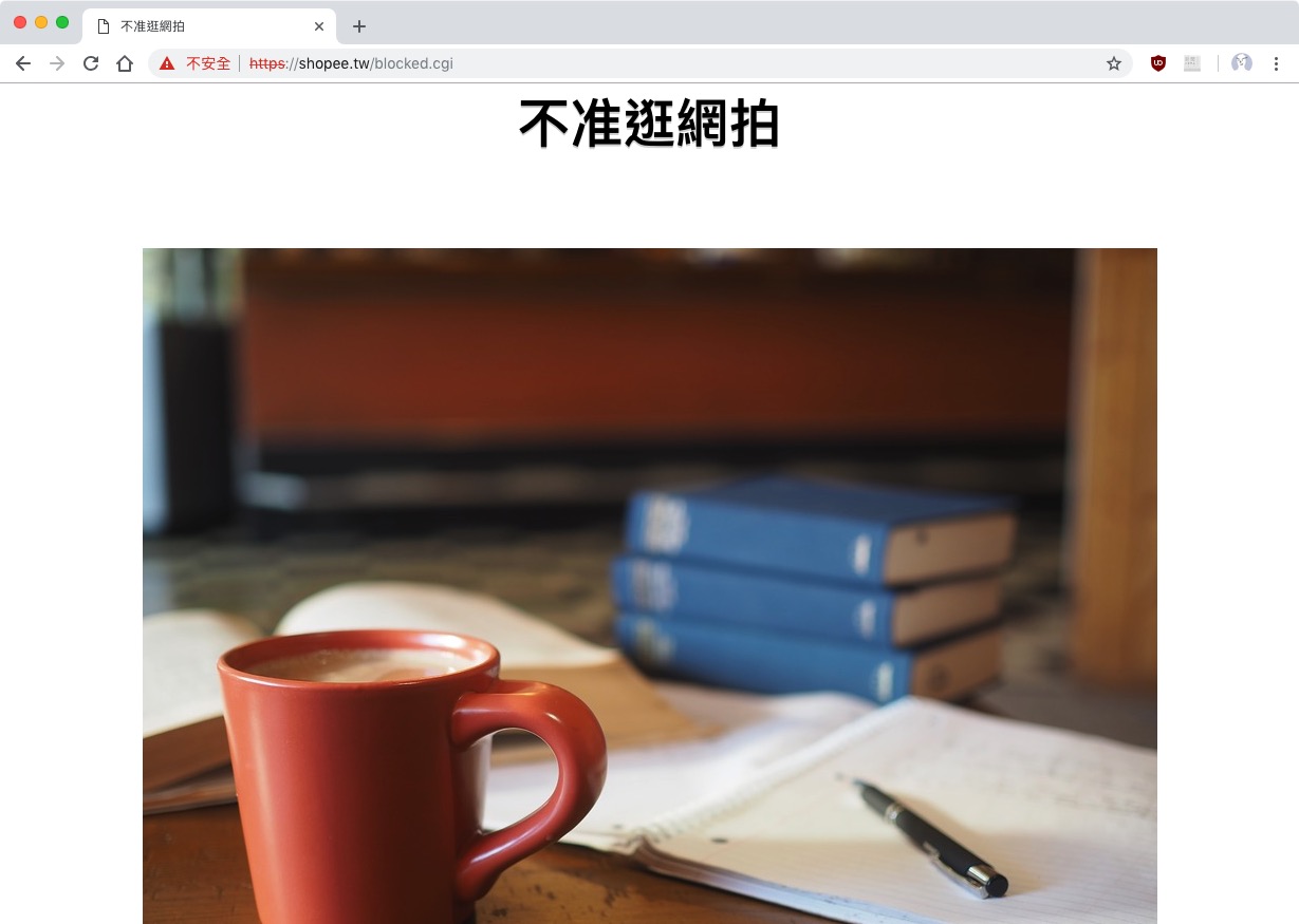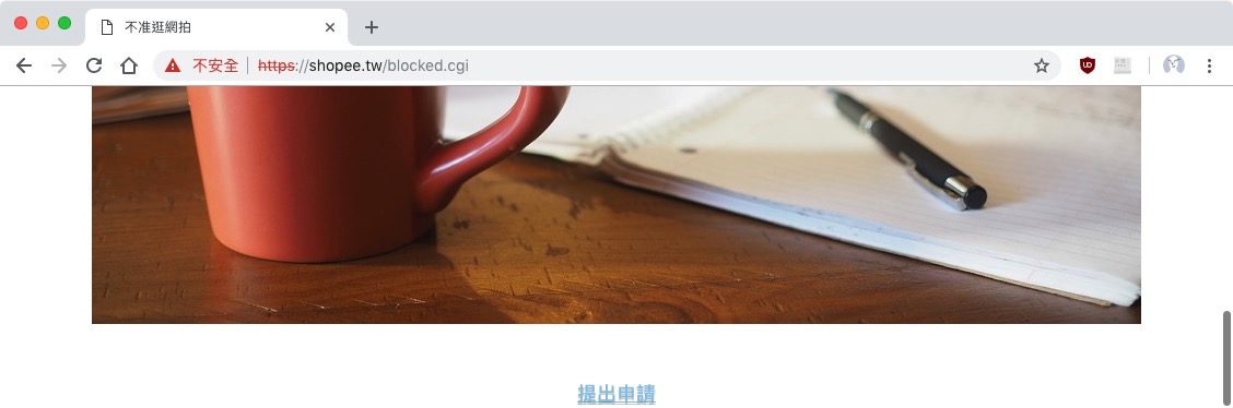 所以上面那個網站被封鎖的示意圖,我還是收到了信,才知道有這個網址被封鎖。刻意連上,才看到有封鎖畫面。