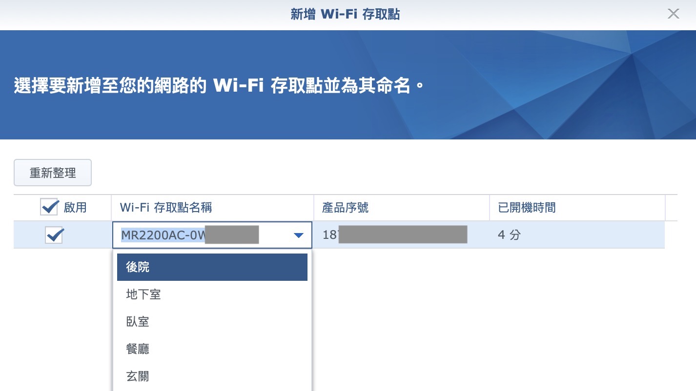 ▼ 接著可以命名這台的名稱,可以選他列好的,也可以自己改,這是為了之後方便管理,在有多台的情況下,可以知道是誰訊號不好在拖後腿。