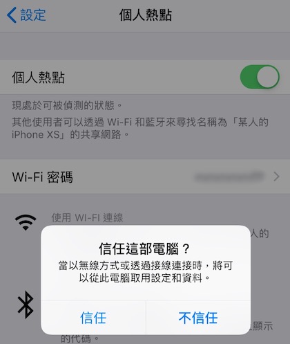 ▼ iPhone 這邊設定個人熱點之後,就直接插上 MR2200ac 後面的 USB 孔,記得按下信任。然後等個幾十秒