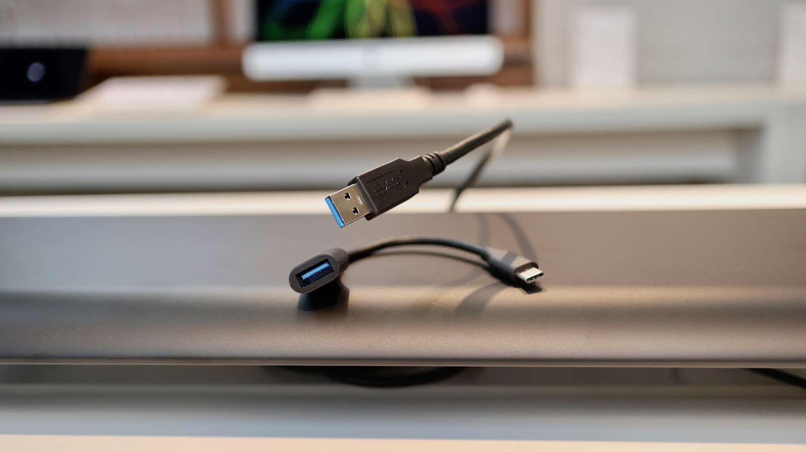 (圖片中間是 USB 連接線,如果你是新款 USB-C 的電腦,你會需要準備一條圖片中左邊的轉接線)