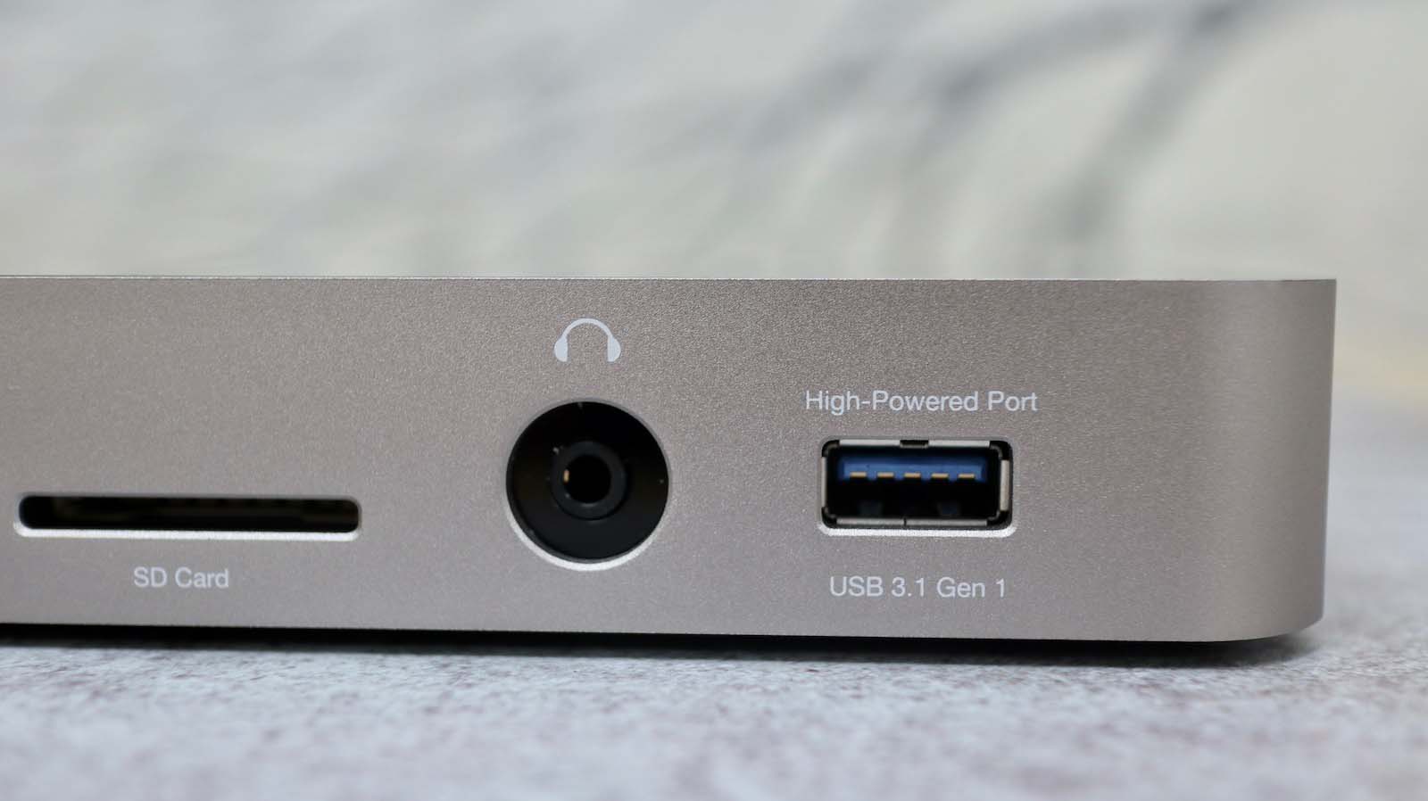 ▼ 這款 Dock 正面提供了音源孔、SD 卡、以及一個 USB-A。正面算是中規中矩的