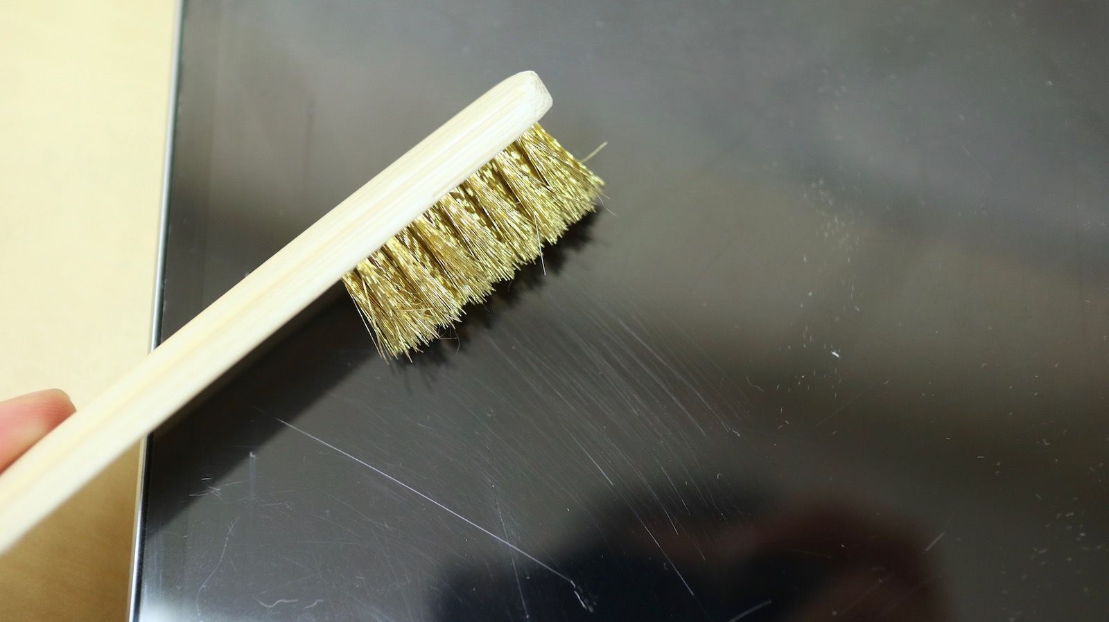 ▼ 當然,硬度自然也是可以放心的,拿鋼刷都完全不留痕跡,就可以安心的裸機放到包包內了。