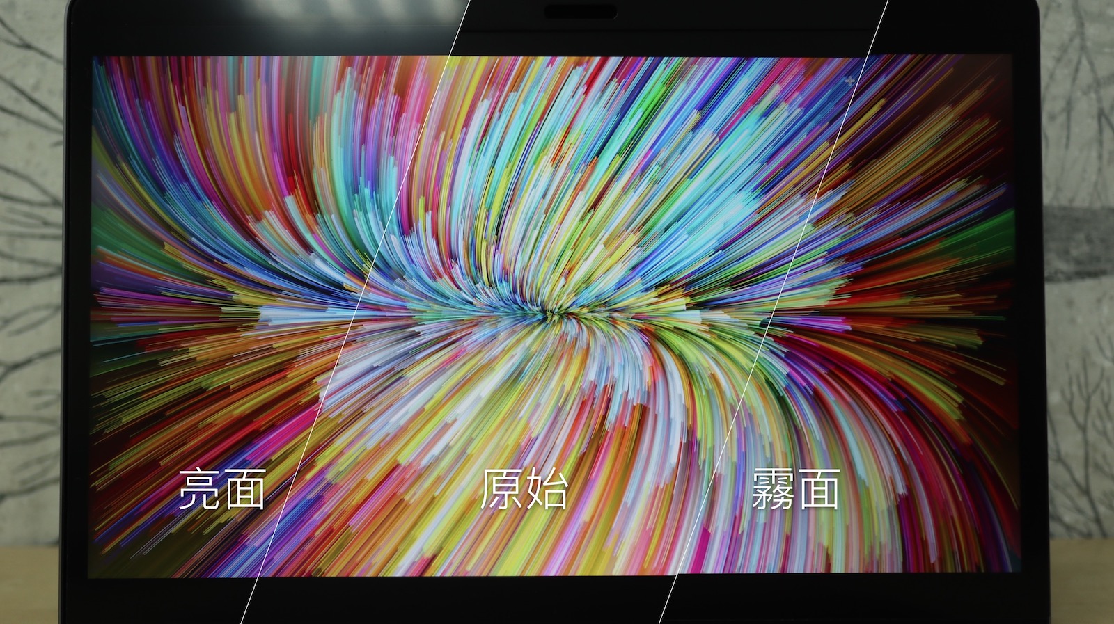 ▼ 我們實際來比較一下,中間是沒有貼的原始螢幕亮度(都是調到最亮),然後在相機沒有任何調整下,接續拍下本防窺片的亮面以及霧面。可以看到雖然的確是稍微有變暗一點,但沒什麼影響。
