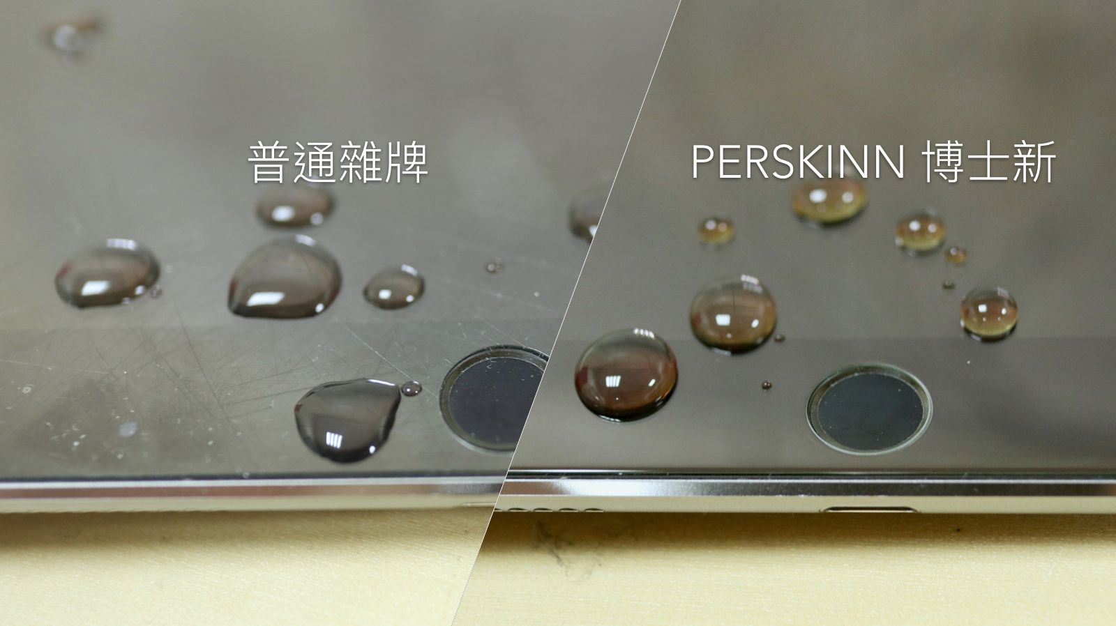 可以看出如果摸起來是不滑順的保護貼,肯定是上面不平整,所以水珠不會挺立。右邊的 PERSKINN 的水珠非常的挺立,所以我摸起來很滑順不是我的錯覺。